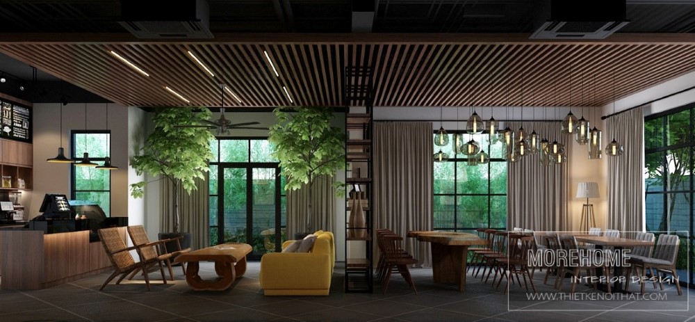thiết kế quán cafe , thiết kế nội thất quán cafe , thiết kế quán cafe hiện đại